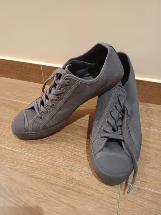Zapatillas de lona en color gris oscuro, nuevas sin estrenar. - Cierre con cordones. - Puntera reforzada. - Detalle de costuras.
