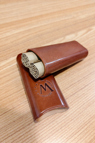 Purera de dos puros, de piel marrón marca Montes Ubrique. Fabricada a mano en Cádiz, en perfecto estado.