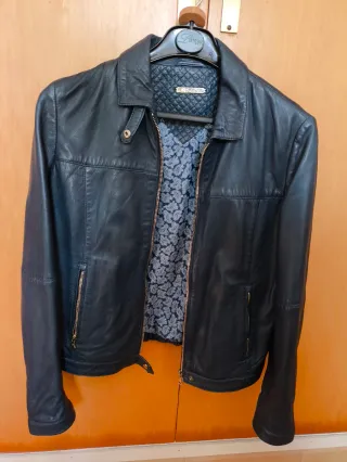Elegante chaqueta de piel para mujer. - Diseño clásico con cuello - Cierre de cremallera frontal - Bolsillos con cremallera - Forro interior estampado