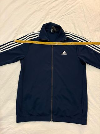 Chaqueta deportiva de la marca Adidas en color azul. - Diseño con las tres rayas icónicas en las mangas. - Logo de Adidas en el pecho. - Cierre de cremallera frontal.