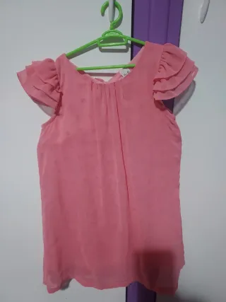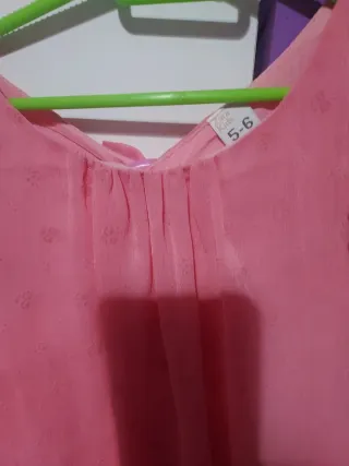 Vestido de color rosa con un diseño delicado y detalles de volantes en las mangas. - Mangas con volantes. - Escote redondo. - Tejido ligero.