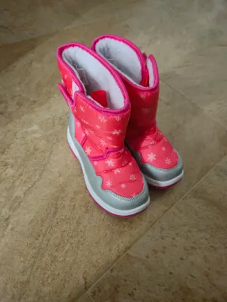 Botas de nieve para niña con un diseño divertido y cálido. Disponibles talla 33 y talla 24 del miamo modelo. - Exterior en color rosa con estampado de copos de nieve. - Detalles en color plateado. - Interior forrado para mayor comodidad y abrigo.