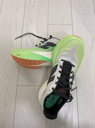 Zapatillas de running New Balance Elite V5. - Diseño en verde y blanco. - Tecnología FuelCell en la mediasuela. -Placa de carbono - Ultraligeras ( 214gr)