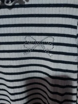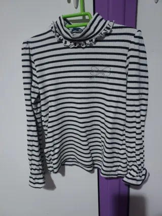 Camiseta 5 años rayas cuello alto volantesy brilla