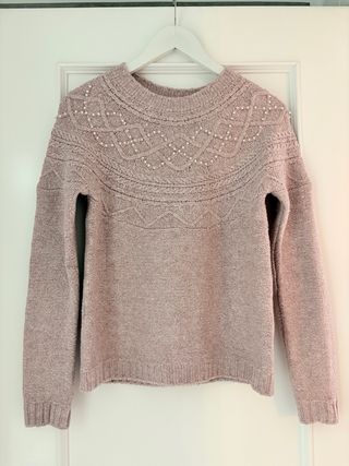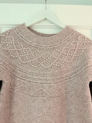 Jersey de punto fino con detalle de perlas en la zona del cuello y hombros. Un toque elegante para tu día a día. - Diseño con cuello redondo. - Manga larga. - Adorno de perlas. - Tejido suave.