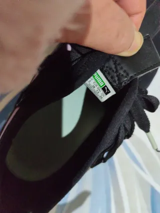 Zapatillas deportivas Puma en color negro con detalles en rosa. - Cierre con cordones. - Diseño moderno y ligero. - Logo de Puma visible.