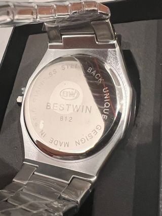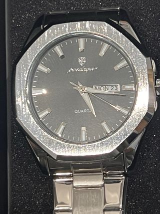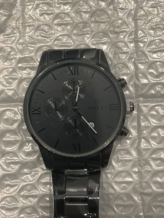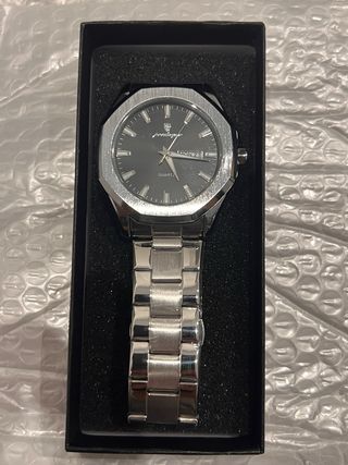 Elegante reloj con diseño moderno. - Esfera con números romanos. - Tres subesferas decorativas. - Correa de metal. - Plasticos protectores aun puestos