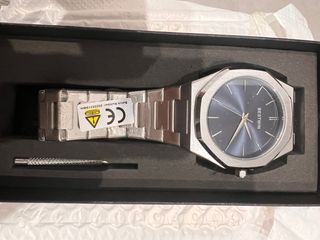 Elegante reloj con diseño moderno. - Esfera de color azul. - Correa de eslabones plateada. - Caja con acabado metálico.
