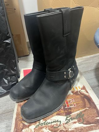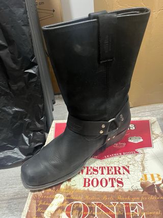 Botas de estilo cowboy de cuero. - Diseño de caña alta. - Correa decorativa con hebilla. - Detalle metálico en la correa.