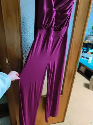 Mono largo elegante con una manga. - Diseño cruzado en el pecho. - Cintura marcada. - Pierna ancha.