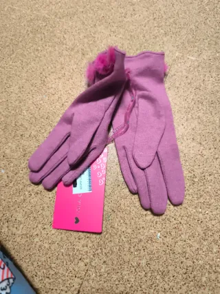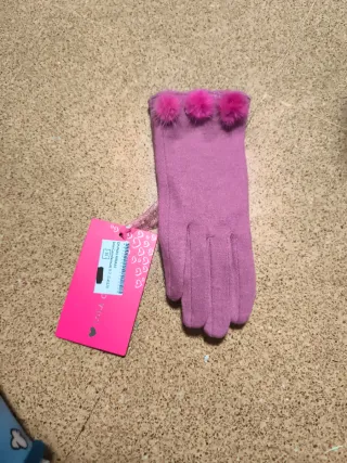Guantes de la marca Lola Casademunt con un diseño encantador. - Adornados con tres pompones de pelo sintético en la parte superior. - Tejido suave y cómodo. - Color rosa vibrante.
