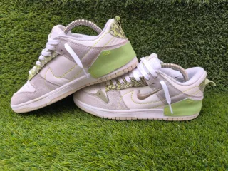 Zapatillas Nike Dunk Low Disrupt 2 con un diseño moderno y detalles llamativos. - Combinación de colores verde y blanco. - Estilo urbano y casual.