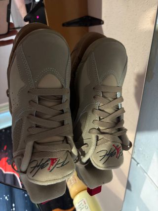 Zapatillas Jordan en color beige con detalles en rojo. Están nuevas y listas para estrenar. - Diseño moderno. - Cierre con cordones.