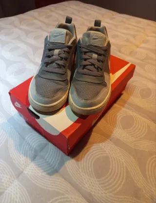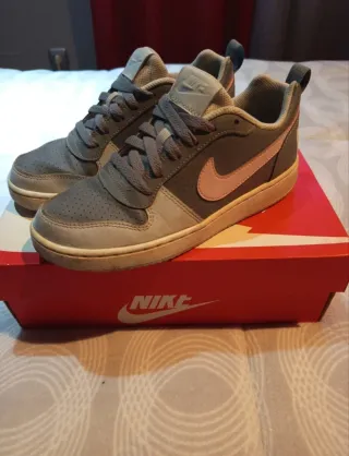 Zapatillas deportivas Nike con un diseño moderno. - Combinación de colores gris y rosa.