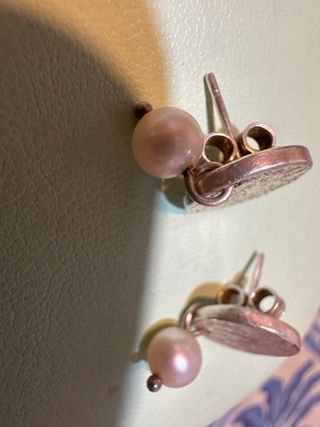 Elegantes pendientes Tous con un diseño único que combina plata y perlas. - Diseño de disco martillado en plata. - Perla de tonalidad rosa colgante.