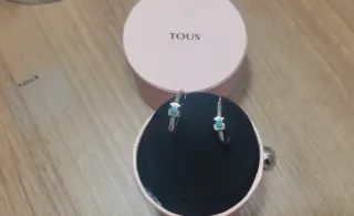 Pendientes de la marca Tous con forma de oso y detalle de piedra turquesa. Pendientes con forma de aro (se puede ver que el aro está doblado) Originales Incluye caja y bolsita
