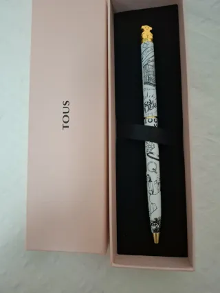 Elegante bolígrafo de la marca TOUS, con un diseño único y un detalle de oso dorado en la parte superior. - Diseño con ilustraciones. - Detalles dorados.