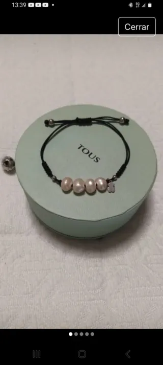 Pulsera de la marca Tous con perlas y charm de oso. - Perlas de agua dulce. - Detalle de oso. - Cierre ajustable.