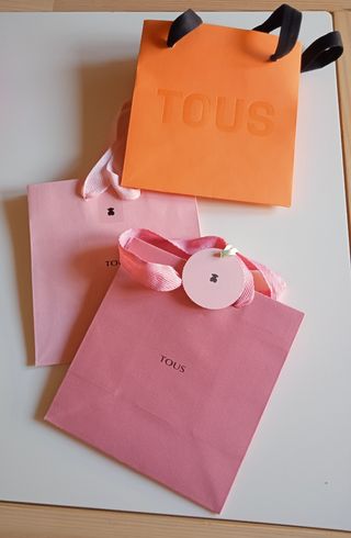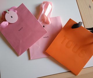 Tres bolsas vacías de Tous, color rosa, fucsia y naranja. Hago lotes