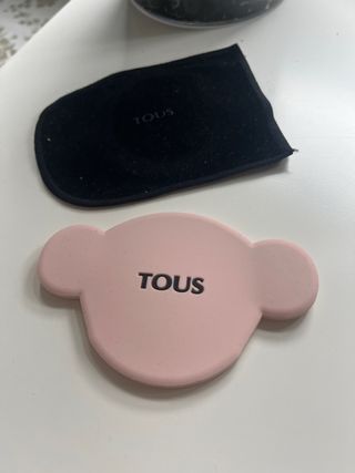 Este espejo de mano tiene un diseño encantador con forma de osito. - Color rosa. - Incluye una funda protectora negra terciopelo con el logo de Tous. - Cajita de laton de tous rosa
