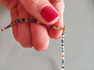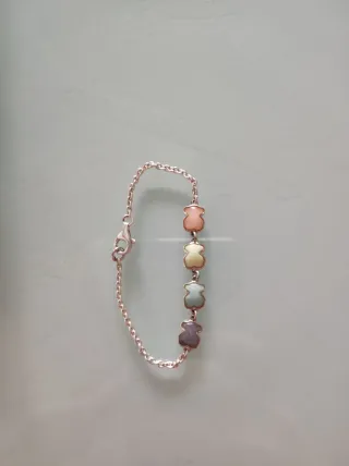 Pulsera de la marca Tous con diseño de ositos. - Piezas de diferentes colores: rosa, amarillo, verde, azul, marrón y gris. - Cierre de mosquetón.
