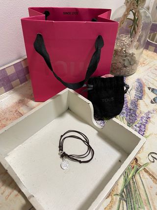 Pulsera TOUS Cordón Marrón y Plata Bolsas regalo