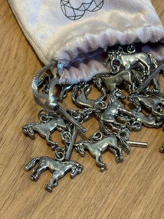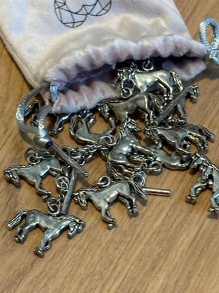 Conjunto de caireles dobles con diseño de caballos, perfectos para traje de corto o campero. Sin uso. - Diseño de caballos detallado. - Acabado plateado brillante.
