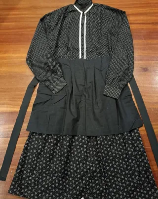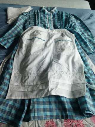 Conjunto de casera vasca, tiene solamente 2 usos. (No se vende por separado ni envios) - Blusa a rayas con detalles blancos. - Delantal azul. - Falda a rayas. - Toquilla negra - Pañuelos azules - Combinacion tono beige