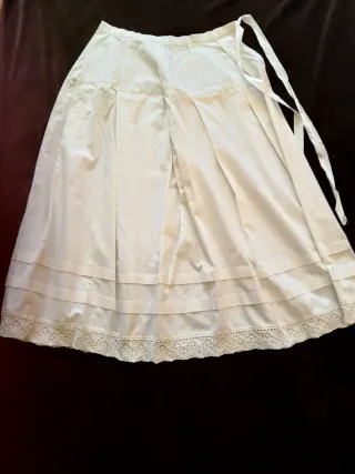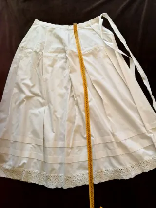 Falda blanca que se usa debajo de la falda principal. - Detalle de encaje en el bajo. - Varios volantes en la parte inferior. - Cierre con cintas.