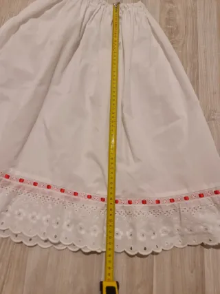Sayas blancas con detalles de encaje y cinta roja, ideales para trajes regionales. Combinación conjunto traje tipico vasco, euskal jantziak, euskal dantzak, euskal jaiak, baserritarra, aldeana, arrantzale, olentzero, navidad, Santo Tomás, Santa agueda, fiestas, neska, baturra, meltxora, pastora, casera, Caserita