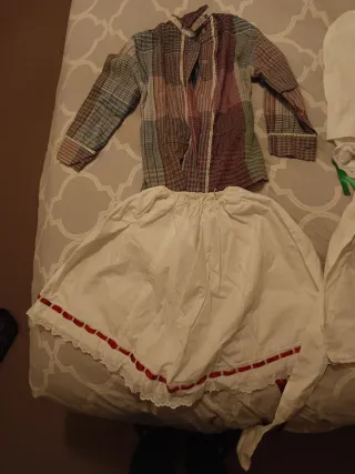 traje regional Vasco aldeana casera baserritarra vale de los 9 a los 12 aproximadamente falda camisa delantal y pañuelo .Tengo en otras tallas y otros modelos. Precio varíable