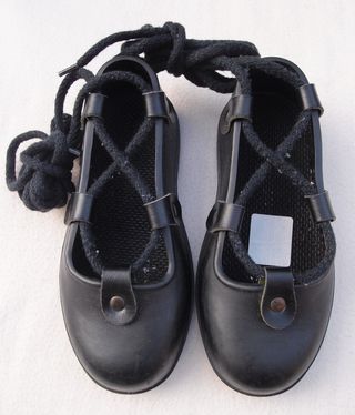 Abarcas traje caserita en buen estado, de cuero, con sus correspondientes calcetines. Tienen suela. Y Albarcas de goma como nuevas y sus correspondientes calcetines. 15 euros cada una. Calzado baserritarra, traje tipico vasco, traje regional, traje tradicional, neska, aldeana, arrantzale, olentzero, vasquita, euskal dantzak, euskal jaiak, euskal jantziak, meltxora, traje tradicional, regional tipico