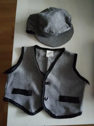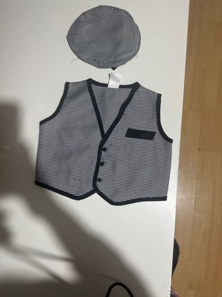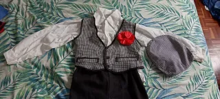 Traje de chulapo para niño,talla 0-1, pero da más talla. En perfecto estado, está compuesto de: - Camisa blanca. - Chaleco de cuadros. - Pantalón negro - Gorra - Pañuelo
