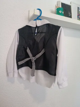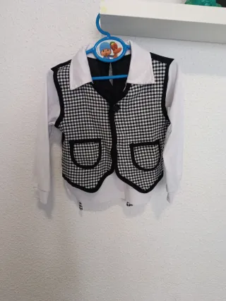 Traje de chulapo para niño o niña de tres a cuatro años. Ideal para fiestas tradicionales. - Camisa blanca con chaleco incorporados de cuadros blanco y negro