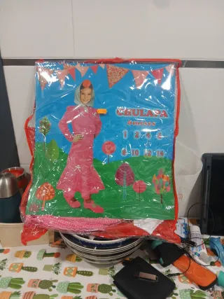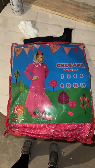 Se Regala Disfraz de chulapa en color rosa, ideal para bebés de 6 meses.( Una semana como mucho) Si no lo tiro - Incluye traje y tocado. - Diseño con detalles de flores. - Perfecto para fiestas