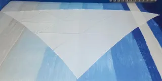 Pañuelo en pico blanco de poliester para traje de chulapa. Es grande y no se queda pegado a la cabeza. Mide 150 x 97 cms. Envío solo por Inpost.