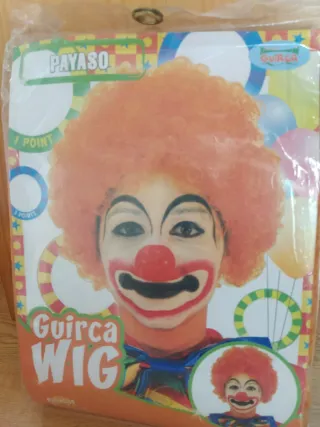 Peluca de payaso con rizos cortos en color naranja. Ideal para disfraces de carnaval o fiestas temáticas. - Diseño llamativo y divertido. - Un tamaño que se adapta a la mayoría.