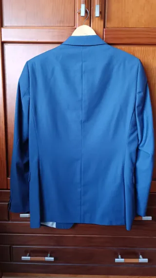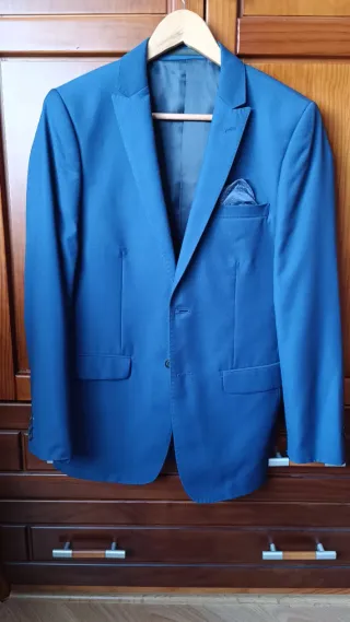 Traje elegante de color azul, ideal para graduaciones, fiestas o ceremonias. Ha sido usado solo en dos ocasiones. - Diseño moderno y sofisticado. - Incluye pañuelo de bolsillo a juego.