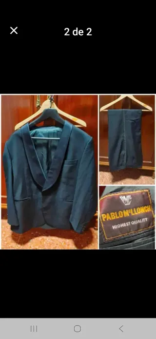 Elegante traje de fiesta de la marca Emilio Tucci con un solo uso,el dia de boda.Se llevo a la tintorería. Tallas visibles en etiquetas,opcional chaleco y corbata a juego,corte muy moderno,bodas,fiestas,comuniones,etc.... - Color azul. - Diseño de solapa clásica. - Cierre de dos botones. - Bolsillos frontales con solapa. - Puños con tres botones. Tiene un solo uso,el dia del casamiento,no he vuelto a usar se acabaron las bodas y no soy yo de trajes.Buen chollo.Precio con chaleco y corbata negociable. Precio del anuncio solo el traje Emilio Tucci,ed, pantalón y chaqueta .