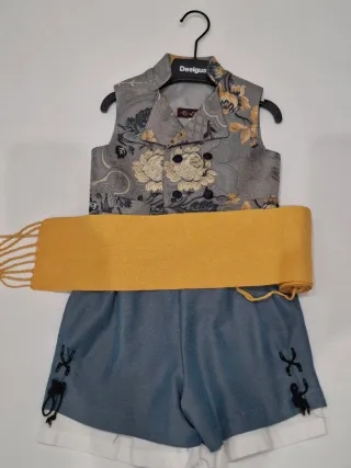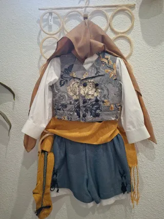 Conjunto de traje fallero para niño, ideal para las fiestas. - Camisa de manga larga. - Chaleco con bordados. - Pantalón corto.