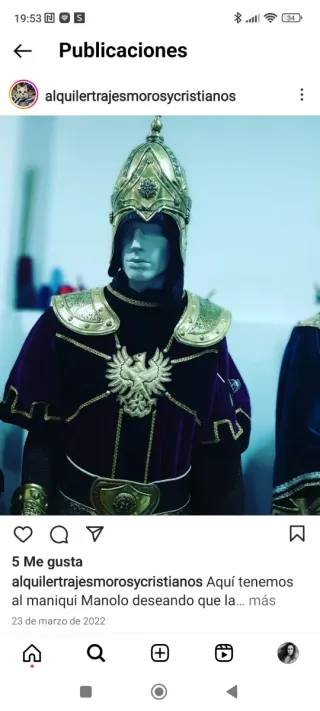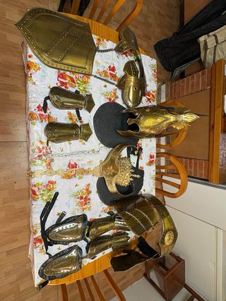 2 trajes completos Moros y Cristianos + armaduras – 250€ (negociable) Se venden 2 trajes completos de Moros y Cristianos con armadura completa y accesorios. Incluye una espada adicional que no aparece en las fotos. Ideales para desfiles, comparsas, fiestas, recreaciones, mercados medievales o eventos ✔ Usados pero en buen estado ✔ No están rotos ✔ Se vende todo el lote junto 💰 Precio: 250€ negociables Más fotos o información por privado. Pd: No tomar cuenta de la marca, debido a que se hizo por una modista.