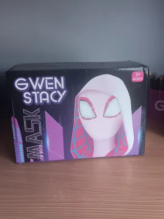 Máscara rígida de Gwen Stacy con luces LED que se activan tocando la frente. Usada una sola vez y siempre guardada en su caja original, por lo que está como nueva. Incluye caja y protecciones interiores. Ideal para cosplay, disfraces o Halloween. Precio: 30 € (negociable)