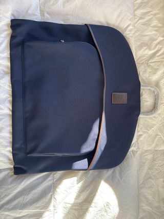 Funda para trajes de la marca Scotta, ideal para proteger tu ropa durante los viajes. Su diseño es práctico y funcional. Tengo 2 iguales el precio es por unidad. Si te interesan las dos, las dejo a 15€. - Color azul. - Cierre de cremallera. - Incluye un bolsillo frontal con cremallera. - Detalle de un patinete y un año '1985' en la parte superior. - Dibujo de un patinete en la parte inferior.