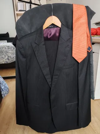 Vendo traje de hombre marca Clockhouse (C&A) en muy buen estado. Color negro con rayas finas, clásico y elegante, ideal para trabajo, eventos, bodas o entrevistas. Detalles: • Marca: Clockhouse • Talla: 54 • Color: Negro con raya fina • Incluye: Chaqueta y pantalón • Estado: Muy buen estado
