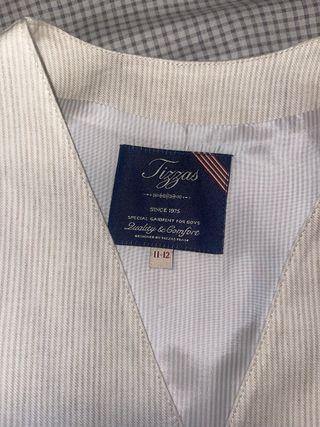 Traje de vestir para niño de la marca Tizzas, talla 11-12. Ideal para ocasiones especiales. - Diseño con rayas finas. - Confeccionado para calidad y confort.