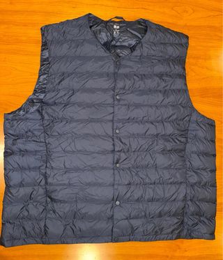 Chaleco fino de la marca Uniqlo en color azul y talla XXXL. - Diseño ligero y acolchado. - Cierre de botones a presión. - Cuello redondo.