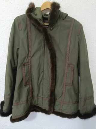 Chaqueta de la marca Georges Rech con un diseño elegante y detalles en pelo. - Color verde - Ribetes marrones - Adornos de pelo en capucha, frontal y puños