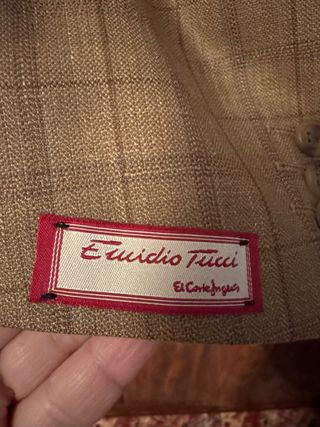 Traje chaqueta y pantalón señora marron camel talla 38. Aunque pone talla 40 da menos talla. Yo uso una 38. Buen estado. Solo puesto en 2 ocasiones. Marca: Monsi. Woman Collection.