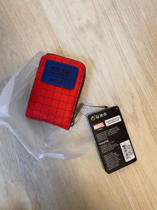 Monedero con diseño de Spiderman de la marca Loungefly. - Cierre de cremallera. - Diseño frontal con el icónico traje de Spiderman. - Detalles en rojo y azul. - “SE HACEN ENVIOS”.