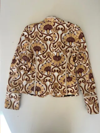 Chaqueta de la marca Blanco con un diseño estampado y doble abotonadura. - Talla 38. - Diseño con motivos florales y geométricos. - Cuello mao. - Puños con detalle. - Cierre cruzado con botones. - Forro completo, incluido mangas Precio No Negociable